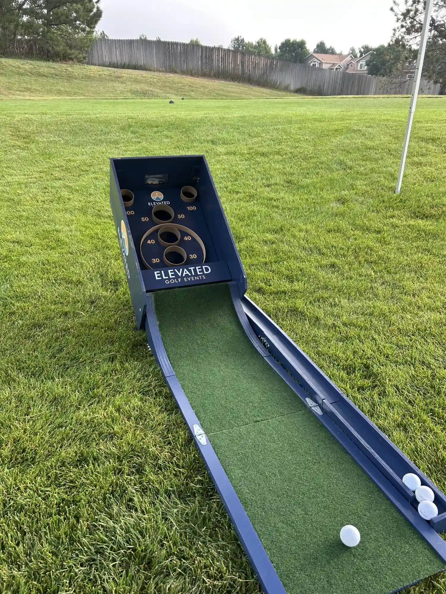 - Can be placed at any hole, or even used before/after the tournament while golfers are waiting.